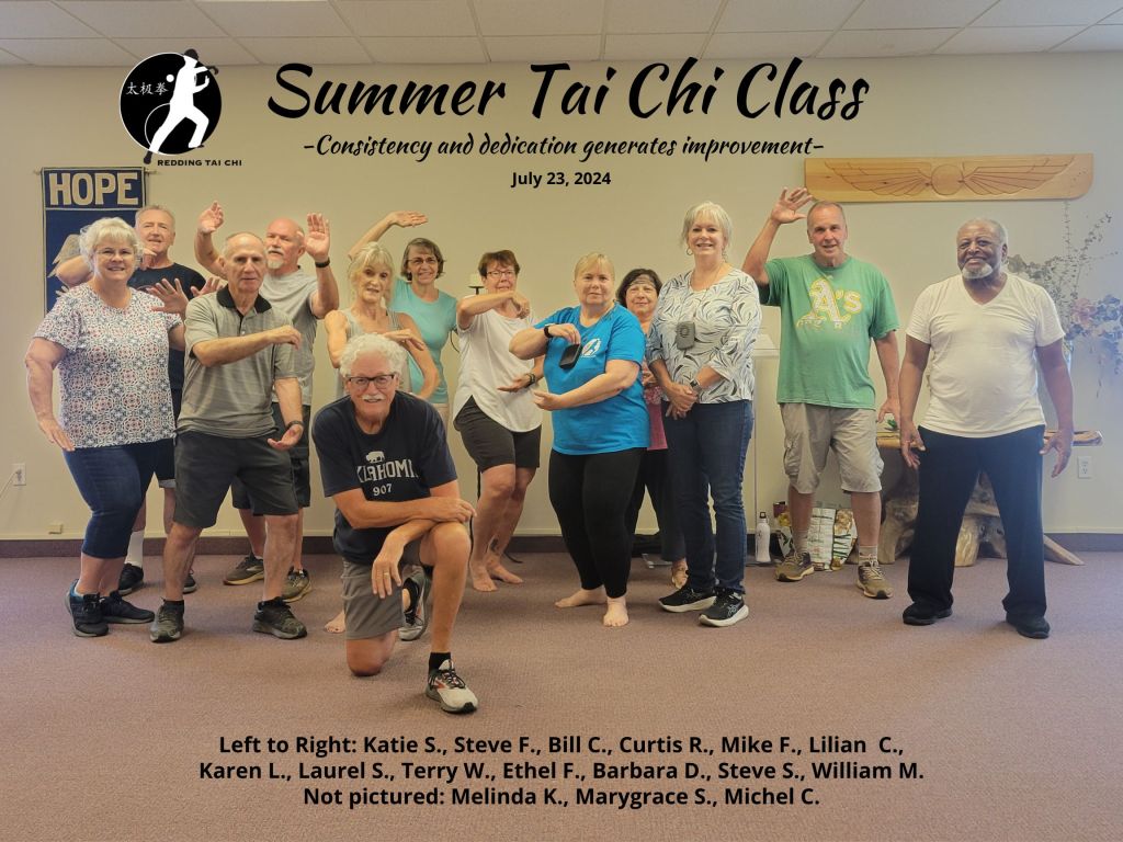 Members of Redding Tai Chi have been very dedicated to their practice during the summer of 2024. The discipline to attend each class and continue to practice and learn deserves praise. Congratulations to all of you!
